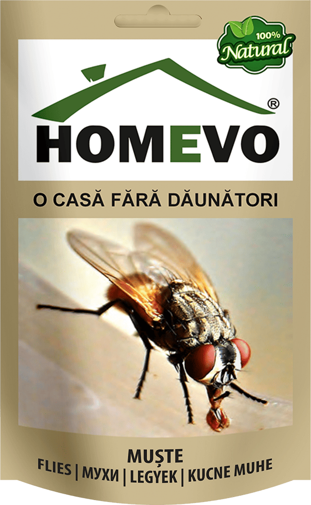 HOMEVO MUȘTE este un produs igienizant și odorizant natural, formulat pentru îndepărtarea muștelor din spațiile interioare sau exterioare.